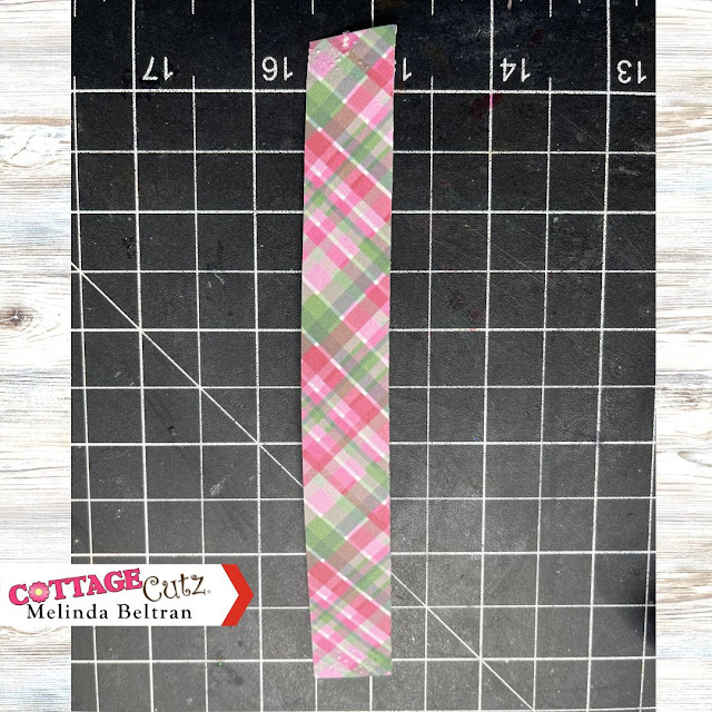 I then cut a strip of the patterned diagonal plaid digital paper. It was approximately .75 x 5.25